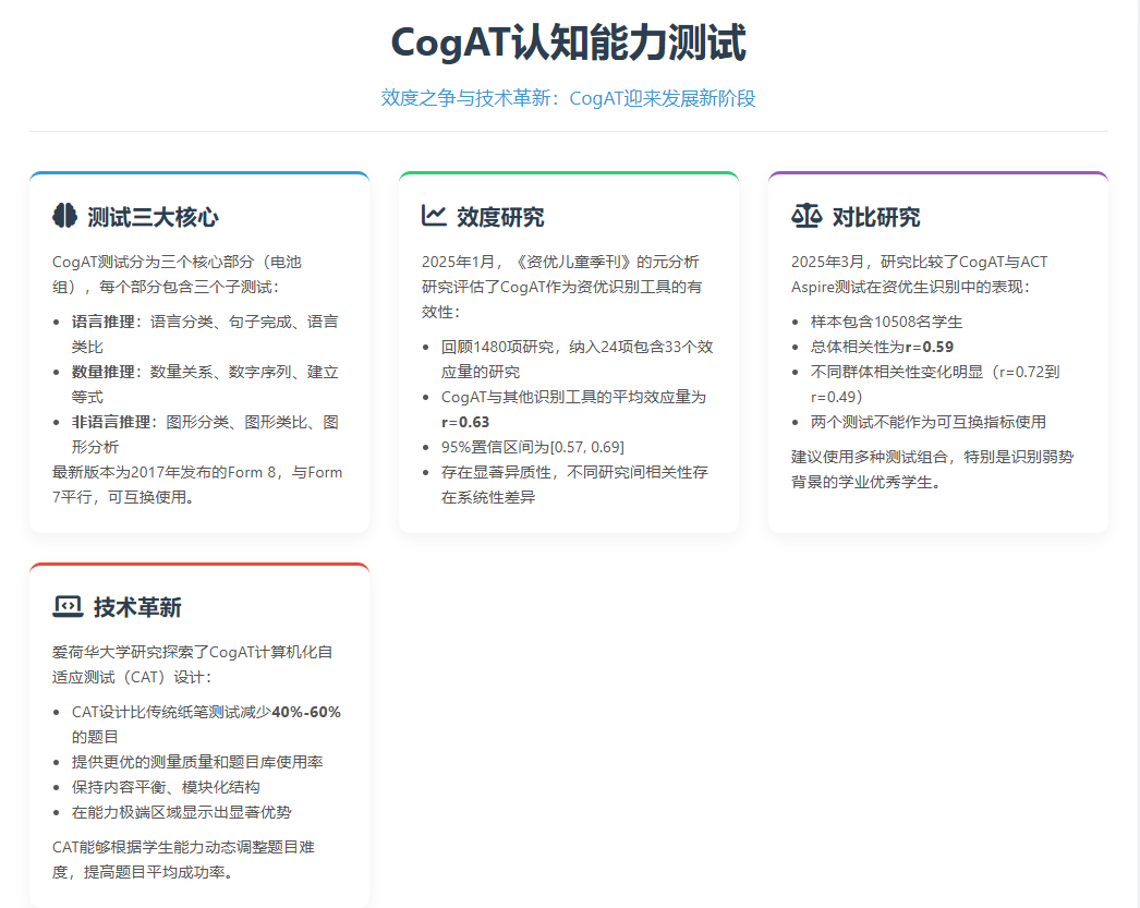 最新研究:CogAT与其他评估工具的比较